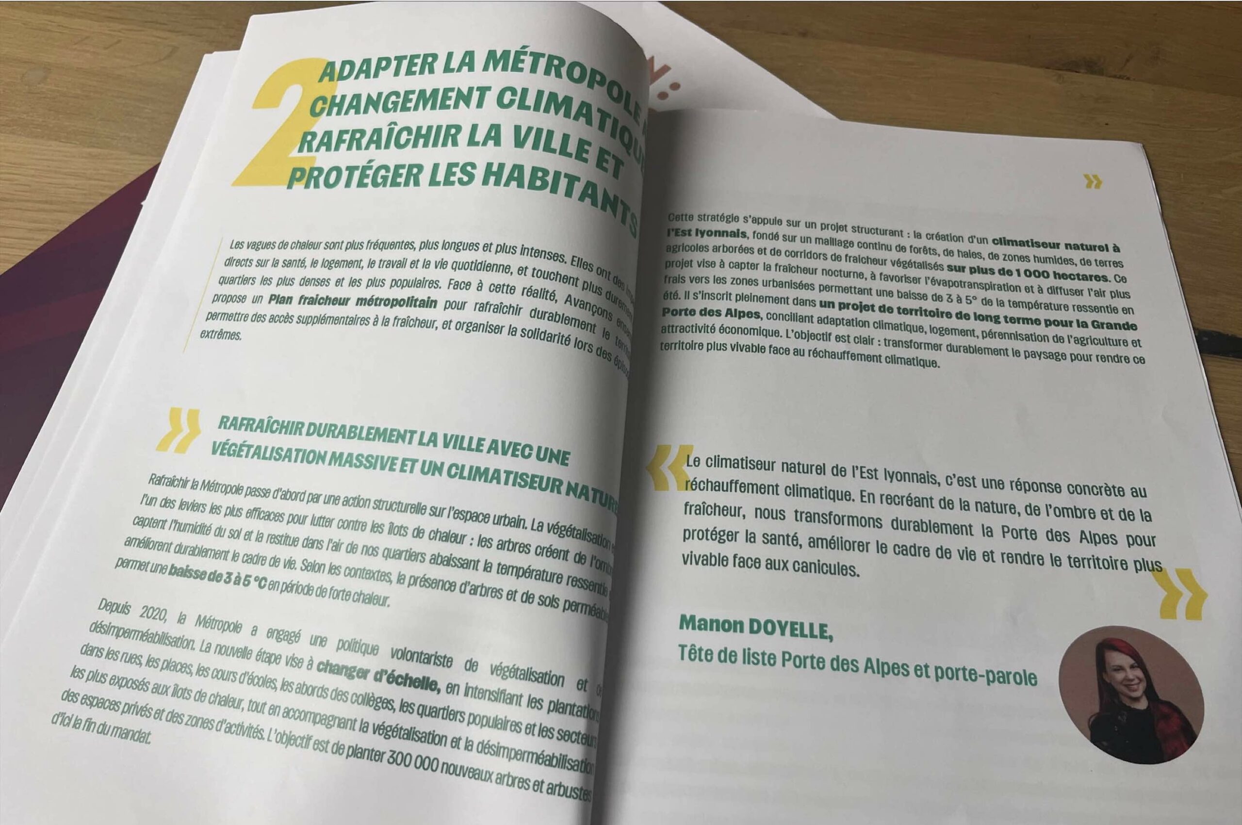 Deux projets ont été évoqués. Le premier concerne la création d’un “climatiseur naturel” dans l’Est lyonnais. Ce projet vise à déployer un vaste réseau de végétation (forêts, haies et corridors de fraîcheur) sur 1 000 has, afin de faire baisser durablement les températures ressenties dans cette zone de la métropole.