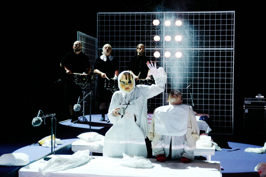 Certaines scènes marquent durablement : le chant d’une interprète cul-de-jatte traversant la scène, les masques rappelant les figures du Cendrillon de Maguy Marin, avec qui elle partage une vision si singulière de notre monde. Ou encore, le final dansé saisissant d’un interprète en Tutu sur The Mercy Seat de Nick Cave. Du chaos de la nuit surgit alors une beauté brute et inquiétante.