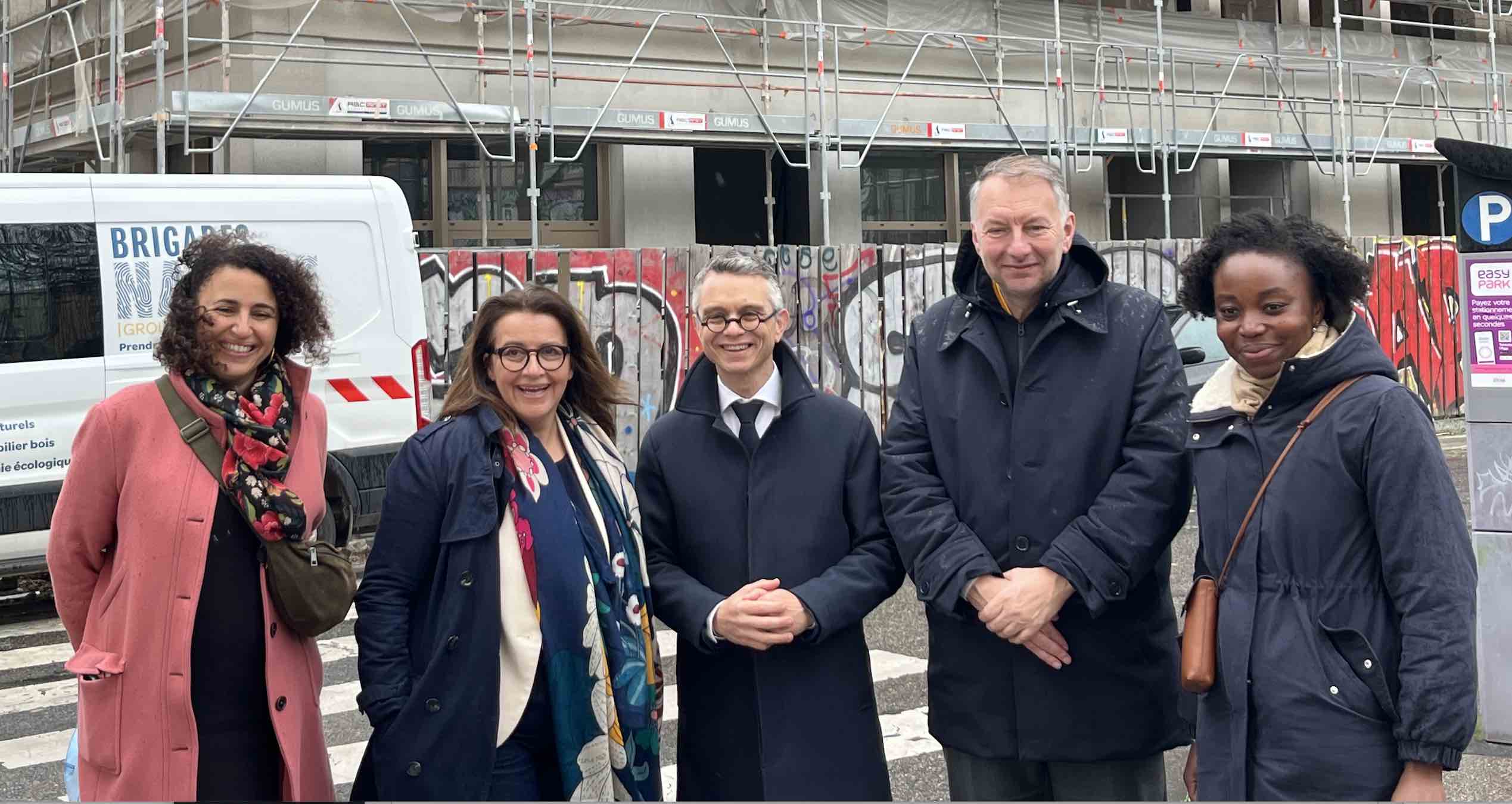 Quelques jours plus tard, le 11 mars, c’est accompagné de Cécile Duflot, ancienne ministre du logement, que Bruno Bernard a évoqué le logement social rue des Nuits, dans le 4e arrondissement, sur le site d’un ancien collège. Ce bâtiment, resté longtemps vacant et squatté, fait l’objet d’une transformation profonde en 105 logements sociaux.